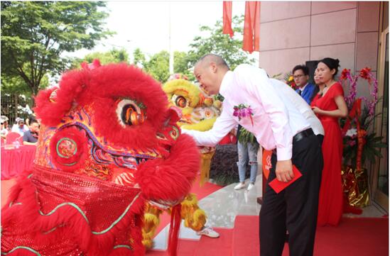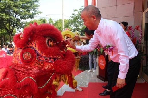 东箭完整家居董事长陈杭闽先生为舞狮点睛、剪彩庆开业