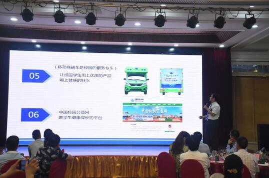 现场具有十多年净水设备研发生产经验的广东宏康水处理设备制造有限公司被授为全国校园健康饮水工程指定供应商。广东宏康实业集团运营总监、全国校园健康饮水工程广州运营中心副主任柳智耀先生现场宣布宏康移动商铺车正式起航,助力校园健康饮水工程快速进入更多的校园,让更多的老师和莘莘学子都能喝上健康好水。