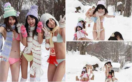 京城消暑新玩法 比基尼美女邀你打雪仗