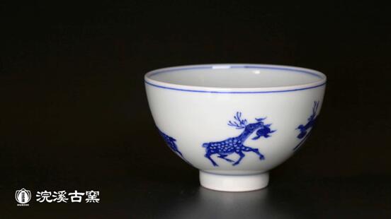 图6 “浣溪古窑”青花六鹿莲子杯