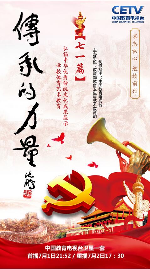 继《传承的力量》端午篇首播以来,2017年7月1日晚上21:52,《传承的力量》七一篇将在中国教育电视台一频道盛大开播。节目导演组深入上海、西柏坡、延安、井冈山等革命圣地,走进深圳、北京等地的校园,沿着先辈们曾经革命、战斗和建设的足迹,记录展示新时代青少年缅怀革命先烈、传承红色经典、弘扬革命精神的心与路的征程,为党的96周岁华诞送上了美好的祝福。