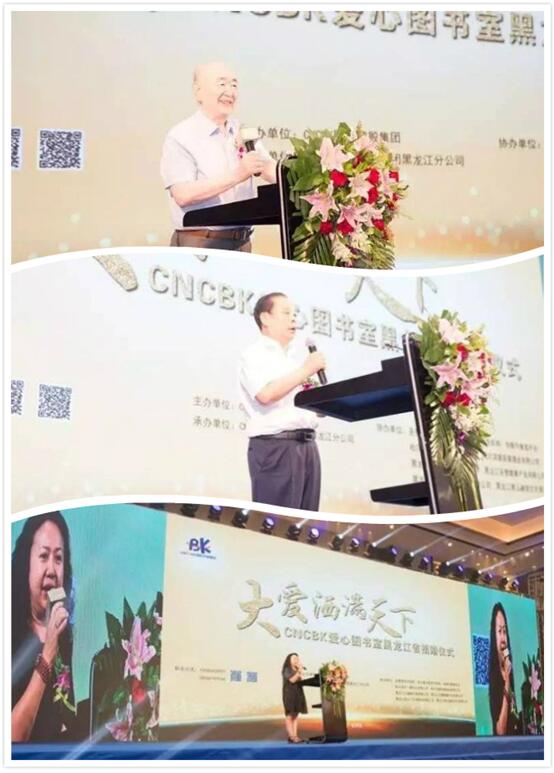 随后邀请到场嘉宾:国家民政部原副部长陈虹、黑龙江省人大原党委书记、副主任、黑龙江省慈善总会会长刘东辉;中华慈善总会第三届荣誉副会长、永久理事张倩玉;三位领导上台致辞,传递了参加此次慈善捐助会议的所感所想,对CNCBK在推动社会经济发展、积极投身慈善事业,社会效益和经济效益并重的发展理念给予了高度肯定!