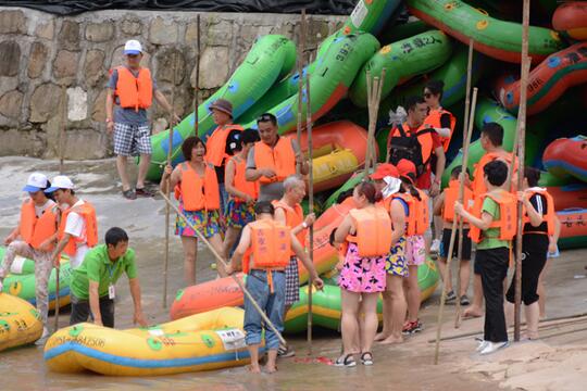 记者在古夜郎漂流售票厅看到,前来购票的游客络绎不绝。放眼蒙渡河,上千游客点缀在河谷中,欢笑声、尖叫声与河水哗哗的流动声组成了一支欢乐交响曲,真是一次阳光之旅、激情之旅、浪漫之旅。