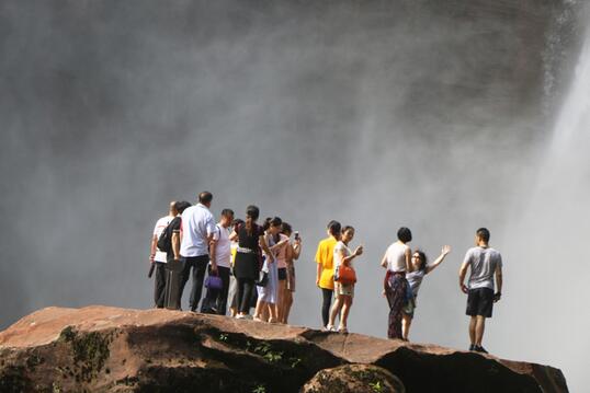 赤水大瀑布景点:一是在山体中建成电梯并成功运行,大大地增加了游客的轻松舒适度,也满足游客快进慢游服务需求,也充分展示了无障碍设施的便捷,大瀑布电梯被称之为“最环保的电梯”,是赤水旅游坚守生态和发展两条底线最典型的代表。二是对建设黎明村实施“党建+旅游+扶贫”计划,帮扶贫困户7户,解决就业岗位20个,并对黎明村相关项目进行投资改造,使旅游设施日臻完善,增加了农民收入和就业渠道,增强了服务观念,使得“党建+旅游+扶贫”综合效应初步显现出来。