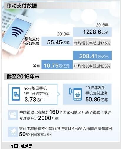 农村地区手机银行开通数累计3.73亿户,去年手机支付业务笔数50.86亿笔