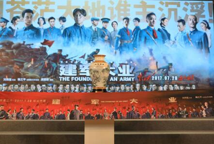 《建军大业》首映红毯,众星亮相并获赠《盛世江山》珍藏瓷瓶