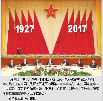 国防部举行盛大招待会 热烈庆祝中国人民解放军建军90周年