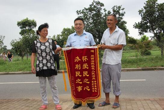 肥西法院桃花法庭通过不到3个月耐心细致的工作,终结硕果。今天上午八时许,在合肥市中级人民法院副院长程洛发、机关党委副书记罗俊,肥西县法院院长张勇、肥西法院桃花法庭庭长徐明显、紫蓬镇政府人大主席赵宜准等有关人员、窦某某及其家人的见证下,合肥科技职业学院组织对该“钉子户”房屋进行现场清拆。拆前,窦某某及家人感慨万千,特地向肥西法院桃花法庭赠送一面词为“怀爱民之心,办利民之事”锦旗,感谢法官们长期以来对其所提供的帮助,为他们及时解决拆迁纠纷,妥善合理的得到补偿安置,化解与被告间的误会和矛盾。窦某某在现场多次感动落泪,紧紧握着合肥科技职业学院董事长的钱洲胜的手,表达其多年来的歉意,感谢学校一直以来的宽容与谅解,希望学校能够越办越好。