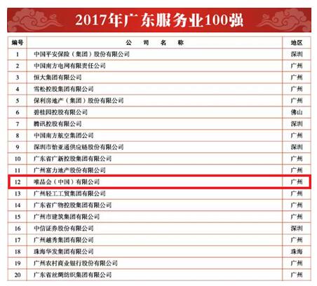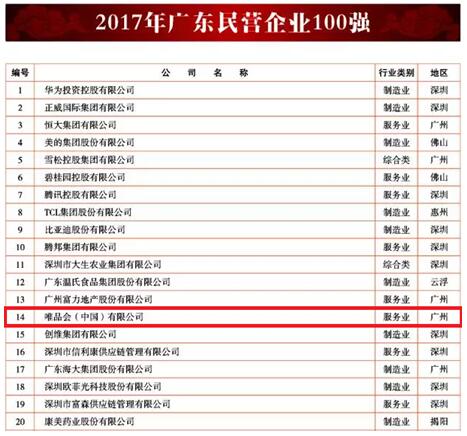 2017年广东企业500强榜单出炉 唯品会位列互联网第二