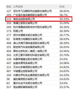 ROE是反映投资者回报率的核心指标之一,也被称为“巴菲特的财富密码”。通俗来说,ROE能够反映该公司的股价走势和赚钱能力。从“2017年中国500强净资产收益率(ROE)最高的40家公司”数据来看,唯品会以35.53%的ROE稳踞互联网行业第一。据此,唯品会也实现了从2015年起连续三年ROE超过33%,连续三年跻身中国500强企业ROE前五名的成绩,处于全球资本市场领先水平。