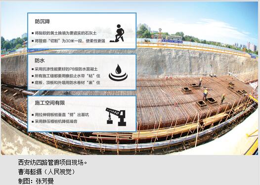 建设管廊不仅要在地下动脑筋,还涉及房屋拆迁、管线迁改、水系改道、苗木移植、交通疏导、市政协调、园林等方面,每条管廊的外围协调单位多达20多家。“如果不是西安政府各部门给了很大支持,项目很难这么顺利推进。”张平说。