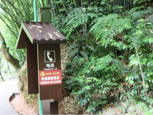 记者在赤水旅发公司各景区看到,郁郁葱葱的大森林,流水潺潺,游人如织,各条栈道干净整洁,每隔一段距离,或在旅游栈道旁,或在栈道的不远处,就会有一颗安装着摄像头、被涂上绿颜色的钢管架矗立着,或是一块印有党徽和“有困难找党员”的红底黄字温馨提示牌,时刻提醒着广大游客,让人在旅游中感觉到便捷、安全、舒心。