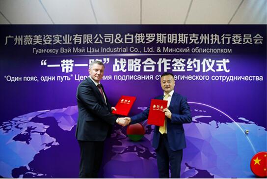 图:薇美姿与白俄罗斯明斯克州执行委员会签署“一带一路”战略合作