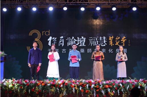 2017年11月17日茱萸寺首届药师佛文化节暨中国第三届禅商论坛开幕暨颁奖盛典隆重在江苏徐州举行!由知名央视卫视等访谈节目媒体主持人杨阳先生担任压轴主持,佛光普照山川,大爱洒满人间。千年古刹茱萸寺以圆满智慧、喜悦人生,共享禅悦精神盛宴,并把禅商文化溶于大时代的一带一路,光耀五洲四海,情系中华道统,让我共同分享佛学智慧。杨阳先生说2017年中国禅商第三届论坛在热闹温馨,大众同乐的气氛下圆满落下帷幕,并以冬日的暖阳沐浴着华夏大地春暖花开。