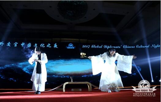 12月2日,以“民间外交,文化先行,助力一带一路”为主题的第三届“2017全球外交官中国文化之夜”在北京中国大饭店盛大启幕。该活动由国际经济与文化交流的平台LOOKWE 发起并联合五大洲156个国家驻华大使馆,国际外交官组织( DNB)英联邦北京协会(CSB)北京武官组织(BMAC),以及北京路客威国际文化发展有限公司、北京万三晟业国际经济文化传播有限公司共同主办。活动开场,香学艺术家罗子杰先生持鎏金莲花长柄行炉,依据中国古代活动熏香仪轨为活动行“中华香礼”。