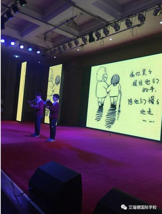 (李世伟 李 响) 我国是一个诗歌的国度。经典的古诗词、天真的儿歌、朴素的民歌,常常萦绕耳畔。为了丰富学生的业余文化生活,进一步了解诗歌,感知诗歌魅力,2017年10月9号下午四点,艾瑞德国际学校六年级举办了一场“漫步金秋 与诗同行”杯诗歌朗诵大赛。全体六年级师生参加了此次比赛,各班选派一个学生以及一位老师担任评委。本着“公平 公正 公开”的原则,紧张有序的诗歌朗诵大赛拉开了帷幕。