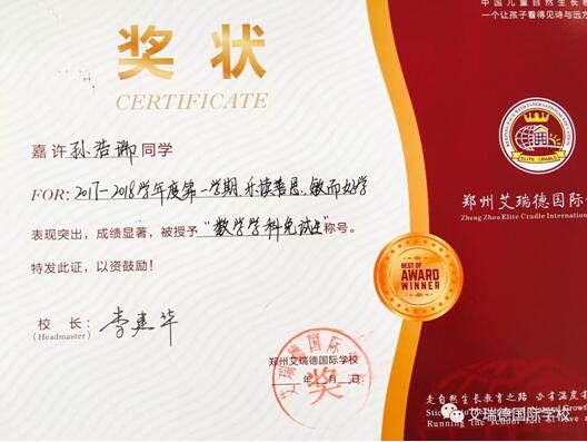 (李 响)在上周的升旗的仪式上有84位同学获得了学校颁发的“免考证书”,成为艾瑞德国际学校首批免试生。这些孩子将在期中质量测评中获得单科免试资格,并且以百分计入总成绩。这一消息轰动了整个学校,孩子们为此欢呼和祝贺,老师们也喜不自胜。