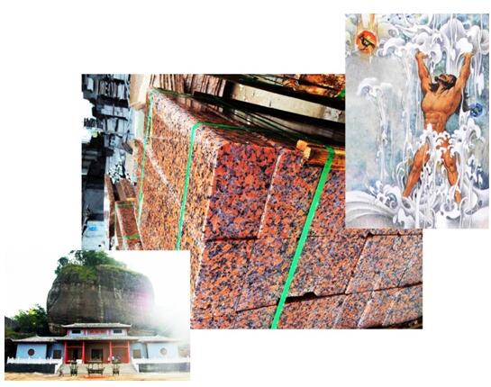 “人法地,地法天,天法道,道法自然。”春秋时代伟大的思想家老子《道德经》中的名句,向人们昭示了世间万事万物皆应运而生的道理,感盘古开辟、三皇治世、五帝定伦之初,便有了岑溪这片眷丽深情的土地。岑溪自古以来就山清水秀、人杰地灵、与“石”有缘、因“石”而兴,中国人一直认为,石,是普天之下最富有感情和灵性之物,象征着天地正气,寓意着平安和谐、百事顺遂、幸福吉祥,所以,常常用来作为护身之符、镇宅之宝和定情信物。时光穿越到了5000年前,当时天地未分、一片混沌,但见中华文明的创世巨人盘古大帝,手执一把锋利、敦厚的石斧,张开强劲有力的臂弯,以雷霆万钧之势划向长空,霎时间石破天惊、电闪雷鸣、鸿蒙初开、霞光万道、华彩绽放,其中的一块石头化身成为石庙山,盘踞于古义州大地上,四周有五色祥云缠绕,人们于山中建起一座盘古庙,千百年来,庇佑着中华大地江山永固、河清海晏、四海升平,岑溪人憨厚务实、勇于拼搏、热情灵动的性格特征也因“石”而生;石,不但富有感情和灵性,还蕴含着坚忍不拔的毅力。时光穿越到了明代,在吴承恩笔下的《西游记》中,那只备受人们喜爱、极富传奇色彩的美猴王孙悟空,正是由女娲娘娘补天时掉下东胜神州花果山茫茫大海之中的一块仙石所生,由于有着“石”的天赋和品质,他敢于战天斗地,在闯过了九九八十一关之后,终于修成正果、普渡众生、建功立业,赢得千古传颂,在美猴王的身上,让世人感受到了有情有义、大公无私、气壮山河的张力;时光穿越到了清代,在曹雪芹笔下的《红楼梦》中,贾宝玉同样是女娲娘娘补天时掉下人间的一块“三生石”,身为神瑛侍者的他,心甘情愿地付出了所有的感情,化身为阳光雨露沐浴着林妹妹这棵绛珠仙草,敢于以“木石盟心”去挑战传统礼教中的“金玉良缘”,在西方灵河岸上演绎出一段缠绵悱恻、可歌可泣的爱情故事,也向世人诠释着“黄金有价,灵石无价”的道理。凡此种种,虽然只是神话故事和文学作品,但却能反映出人们的文化崇拜,以及底层意识的真实存在;千百年来,岑溪与“石”的缘分不仅从未间断,而且不断得到发展、升华。时光穿越回到了眼前,但见一艘艘颇具气派的万吨巨轮,满满地承载着代表中国传统文化特色,寓意平安喜庆、和谐团圆、兴旺发达,观感红红火火、浮光掠影、金碧辉煌的“中国红,岑溪红”花岗岩名石,沿着21世纪海上丝绸之路的海岸线,在一望无际的大海中风驰电挚般航行,穿越五大洲四大洋运往世界各地,喜庆、装典着栋栋高楼大厦!正是天时、地利、人和等因素的相互交织和共同作用,古往今来历史文化的血脉相承,成就了岑溪这座享誉海内外、首屈一指的中国“石”都。