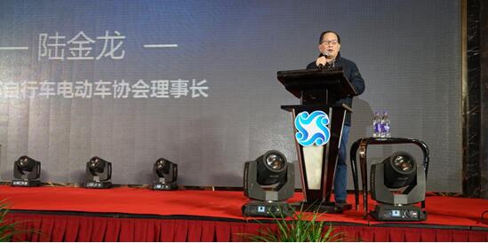 江苏自行车电动车协会理事长陆金龙代表行业协会致辞,他寄语华频用无刷变频智控技术再造传统产业,加快传统产业转型升级,促进全行业合作共赢。