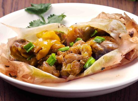 薄如蝉翼的玉扣纸、农家山地散养的三黄鸡、幽深醇厚的秘制卤汁,逐一陈列于案面之上,瞬时间,空气中弥漫着天地融和、原汁原味的诱人芳香!一切经已准备就绪,粤菜厨艺大师们开始运用巧妙的刀工,游刃有余地将三黄鸡切成一件一件,接着勺来秘制卤汁,配以老抽酱油、白酒、枸杞、姜汁、桂皮、八角、茴香、陈皮、草果、红谷米、古月粉等调味料腌制鸡肉,随后,铺开玉扣纸且用手抚平,再将鸡肉置于玉扣纸之上、撒些葱白粒,松紧得度地包裹起来。就这样,一份份如信封形状的纸包鸡包好了,造型优美、叠叠有致。将纸包鸡放入锅中,以花生油隔纸浸炸,片刻的功夫,热气腾腾的纸包鸡终于端上餐桌,一股浓浓的南粤气息扑面而来,轻轻地撕开玉扣纸,金光灿灿的纸包鸡奇妙地飘出了竹子那渗人心脾的缕缕清香,这是以新鲜的嫩竹和清澈的山泉水所制成的玉扣纸独有的香气,缓缓地放入口中,鸡肉鲜嫩甘滑、鸡味浓郁、醇厚不腻……细品一下纸包鸡的历史文化,可以用“博大精深、源远流长”这8个字来形容。“南粤称臣兮,归一统;纸包金鸡兮,定乾坤。”岭南地区(两广地区)民间所流传的这句人们耳熟能详的赋作,仿佛诉说着传世2200年“中国金鸡文化”、粤菜代表作、中国名菜、广西商务厅评定的广西特产行销全国核心品牌、广西烹饪餐饮行业协会评定的广西最具特色餐饮品牌、梧州特色美食纸包鸡的前世今生……据考证,在我国,自古以来就有“无鸡不成宴”的说法,鸡菜肴堪称中国传统节庆的第一道菜,同时又是人们一日三餐的主要菜肴,纸包鸡堪称鸡菜肴中的代表作,古有南越王、汉高祖、苍梧王、唐明皇、杨贵妃、苏轼、明太祖、靖江王、康有为,今有孙中山、陈济棠、白崇禧、徐悲鸿、秦牧、史玉柱等名人,都曾在纸包鸡的史册上留下足迹,为它增添了丰富的传奇色彩!纸包鸡作为宫廷贡品和日常主菜的历史至少已有2200年,始创于岭南地区,公元前203年,赵佗自号南越武帝,建立南越国,定都番禺(今广州),当时的南越王宴就是以纸包鸡作为主菜的。公元前202年,刘邦称帝,史称汉高祖,建立西汉王朝,定都长安(今陕西西安)。及后,赵佗以纸包鸡作为贡品献与刘邦,上表臣属西汉,刘邦品尝了纸包鸡之后龙颜大悦,诏封赵佗为南越王,至此天下归于大一统。纸包鸡和广西桂林这座城市颇有渊源,明朝太祖皇帝朱元璋举“众建宗亲,以藩王室”之政,洪武三年(公元1370年),诏封其侄孙朱守谦为靖江王,藩治桂林,并授金册、金宝,尊荣显赫一时。及后,建靖江王城于独秀峰之下,内立宫宇庙社数百间、外以高城周垣相护,琼楼玉宇、巍峨雄伟、极尽奢华。靖江王城的宫廷宴席也极为讲究排场,道道菜色可谓千挑万选、精益求精,朱守谦在京城(北京)生活时,早已闻得粤地番禺(今广州)有岭南名食纸包鸡,传承越千年、享誉海内外,深感靖江王宴非纸包鸡莫能压轴,遂特意派人到番禺,礼贤下士,将名厨请进王府专事制作纸包鸡,以彰显靖江王宴和粤桂美食之泱泱风范。民间流传着“靖江宴席既出世,纸包金鸡八桂闻。”的说法。太祖皇帝朱元璋尝尽天下美食,对纸包鸡仍然是百吃不厌、情有独钟。朱元璋在京城(北京)天天对着美酒佳肴,日久食则无味,靖江王朱守谦遂向开国名臣刘基奉上一计,曰:“吾粤桂之地有一名食,谓之纸包鸡,必让圣上食肠大开。”刘基遂托朱守谦将岭南地区的名厨请到京城,并带来岭南特有的土鸡品种,制作这道特色菜肴给朱元璋享用。但见刘基送来一碟用纱纸包裹着的鸡肉,朱元璋品尝之后赞不绝口,问曰:“此为何物?”刘基答曰:“纸包鸡。”朱元璋龙颜大悦,遂以“此鸡只应天上有,人间能得几回尝。”对纸包鸡赞不绝口,觉得纸包鸡风味远胜于宫廷珍馐百味。用以制作纸包鸡的土鸡品种也因“羽黄、喙黄、爪黄”,被朱元璋钦赐“三黄鸡”的美名,沿用至今。中华民国五年(公元1916年),粤西楼在梧州创立,聘请名厨官良坐镇,对纸包鸡的烹饪方法进行锐意改良并使其最终成形,酒楼成为了岭南饮食业中首屈一指的“金漆招牌”。2012年,由广大网友和著名文化、传媒人周文懿共同倡导、发起,“互联网+文化定位”文化传播方式正式开始联手美食界名人林艳光和周秀兰,对纸包鸡进行强势打造,永保纸包鸡风味特点传世2200年不变。纸包鸡深受广大老百姓的赞誉,海内外盛传着“食在岭南,不能不尝纸包鸡”这个耳熟能详的说法。2017年,乘借着共建21世纪海上丝绸之路、泛珠三角区域合作、粤港澳大湾区建设、珠江—西江经济带建设、发展中国—东盟自由贸易区等国家战略的东风,位于广东和广西交界的粤桂合作特别试验区江北片区内,实用面积约20000平方米的全国首家超大规模纸包鸡生产基地开始动工建设,纸包鸡正以流光溢彩的传世2200年“中国金鸡文化”为引领,朝着数十亿元产业规模迈进。
