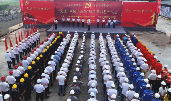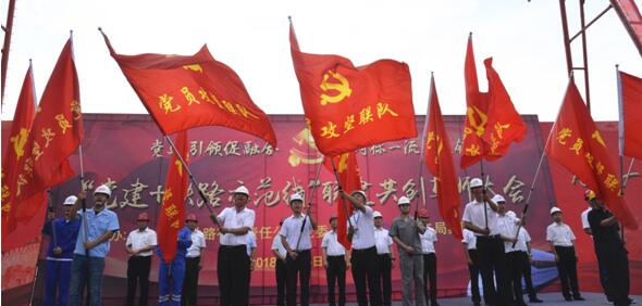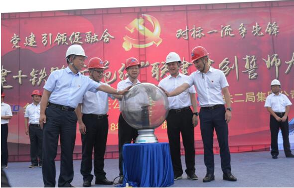 为深入贯彻落实党的十九大精神和新时代党的建设总要求,实现“党建提质,工程提速,双建双提”的目标,全面推进“党建+铁路示范线”品牌建设。7月4日,在中铁二局金台铁路4标田市车站制梁场举行了“党建+铁路示范线”联建共创誓师大会。