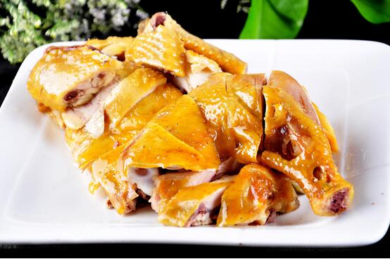 白切鸡,始创于广州,是粤菜(广府菜)的代表作,广州大小宴席中最常见的一道菜色,以广州酒家、文记壹心鸡、泮溪酒家等最享负盛名。广州人认为,最能代表广州市井味道、体现粤菜(广府菜)神髓的,莫过于白切鸡,甚至,只要在广州这片土地上生活过的人,都会情不自禁地爱上它……正所谓“岁月在变,情怀不改”!直到今时今日,当你驻足在广州街头巷尾任意一家经营烧卤味的老字号门前,经常会看到这样的情景:窗台内厨师正在通明的灯火下挥汗斩鸡,窗台外人们正在耐心等待,逢年过节,排队的人流更加壮观,何其墟撼!在清代著名文学家、美食家袁枚的《随园食单》中,白切鸡被称作“白片鸡”,袁枚专为羽禽类菜色开辟《羽族单》,开篇便曰:“鸡功最巨,诸菜赖之……故令领羽族之首,而以他禽附之,作《羽族单》”。在《羽族单》中所述鸡菜肴数十款,蒸、炮、煨、卤、糟应有尽有,唯将白片鸡列于首位,其条下曰:“肥鸡白片,自是太羹玄酒之味。尤宜于下乡村、入旅店,烹饪不及之时,最为省便。”袁枚认为白切鸡有“太羹玄酒之味”,这是极高的评价。太羹者,不和五味的肉汁,古代祭祀时所用;玄酒者,古代祭祀当酒用的水(上古无酒,祭祀时以水代酒),后人常以“太羹玄酒”喻诗文风格古朴淡雅。袁枚对白切鸡可谓推崇备至,认为它已达到返璞归真的境界。论及白切鸡的由来,有着这么一个故事。相传,古时候有一位知书识礼、乐善好施、性格豪爽的读书人,早年寒窗苦读曾觅得一官半职,却终因鄙视官场黑暗,遂弃官务农,过着普通老百姓的生活。他年过半百膝下无儿,这年中秋节,和妻子商量了一下,决定宰只母鸡拜神,祈求保佑早生贵子。于是,妻子便将剥洗干净的母鸡端进厨房,放进盛满清水的锅里,刚在灶中添上柴火,还没有加入佐料和盖上锅盖,岂料,就在这个时候,忽然闻得窗外有人大声呼喊“救火”,原来是小孩子贪玩灯笼而酿成火灾。时值秋高气爽,眼看街坊邻里的房子将化为灰烬,读书人和他的妻子二话没说,揣起水桶就冲了出去救火,在街坊邻里的合力之下,大火终于被扑灭了。待读书人和他的妻子走回家中厨房时,看到灶火已熄、锅水微温,锅中母鸡已经被热水烫熟了,散发出鸡肉原味的清香!白切鸡的传统制作技艺,是以广东清远鸡、杏花鸡和广西三黄鸡等岭南地区的著名土鸡品种为主要食材,制作过程中无需加入任何佐料。将剥洗干净的鸡整只浸入盛有清水的锅中加热,清水煮沸后便将炉火关掉,让热水继续把鸡浸熟,然后浇上冷水,让鸡皮更加脆口。这种做法的绝妙之处在于容易将整只鸡控制在刚好熟透的程度,以保持肉质的鲜嫩。白切鸡做好后,皮黄肉嫩、油光闪亮,蘸些花生油、盐水、酱油、砂姜、葱花、蒜蓉即可食用,具有原汁原味、鸡香纯正、皮爽肉嫩、清淡鲜美的特点,细嚼慢咽令人颊齿留香、回味无穷。