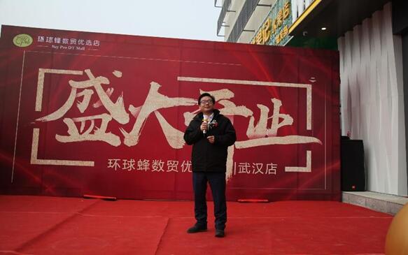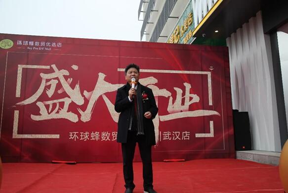 最后,由数贸集团的领头人张冲先生致辞:“ 首先向杨东院长、刘文 献院长,还有来自全国各地的企业家们问好,今天武汉环球蜂首家店开 业,不容易,很辛苦,但是更加的值得,因为我们肩负着数字经济和服 务经济。作为实践者,一路以来,我们战战兢兢、如履薄冰。武汉是一 个因为商业而生的城市,一切的由来都是缘于更大的缘分,我相信在武 汉来落地环球蜂第一个跨境电商实体店,正是时代孕育的结果,因为武汉在近代以来的商业形态和模式被称作“ 东方芝加哥”, 我相信我们整 个数贸店作为第一支“ 蜂”将从武汉起飞,飞遍全球。我相信从第一家 店的开始, 到第二家店,道生一、一生二、二生三、三生万物。我们的第二个店将在福建厦门,第三个店将在孔孟之乡的山东大明湖陆续开业, 公司将在 2019 年率先完成 1000 个店的线下及线上的深度融合战略。一 个店的开始将代表着几千个店的到来,我们不仅要卖好全球各个国家的 产品,更重要的是让中国的品牌以此为契机走向世界,让我们的商业生 态, 在全球“ 蜂” 起来”。