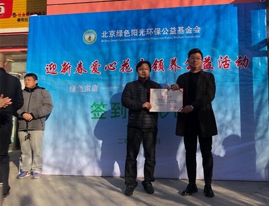 爱心花卉领养活动进行了简短的启动仪式,北京绿色阳光环保公益基金会副秘书长李猛、项目总监杨扬、公益项目负责人张正军、潘家园街道松榆西里社区书记李秀稳、慈善超市区域督导张楠等分别致辞,活动现场还为此次活动公益捐赠企业颁发了捐赠证书。