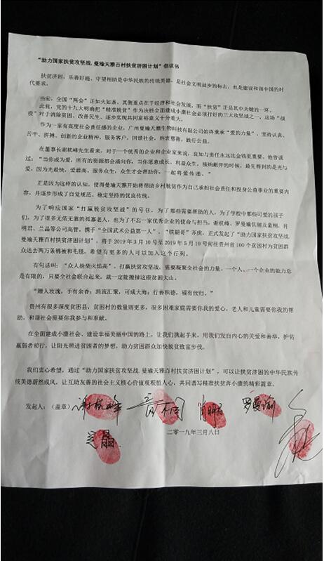 为了响应国家“打赢脱贫攻坚战”的号召,为了那些需要帮助的人,为了学校中那些可爱的孩子们,为了很多无依无靠的孤寡老人,也为了不忘一家优秀企业的使命与担当,谢杭峰、罗曼瑜伉俪及童桐、肖明君、兰晶等公司高管,携手“全国武术公益第一人”、“铁腿哥”齐虎,正式发起了“助力国家扶贫攻坚战.曼瑜天雅百村扶贫济困计划”,将于2019年3月10号至2019年5月10号前往贵州省100个贫困村为贫困群众送去两万条棉被和毛毯,希望有更多的人可以加入这个行列。