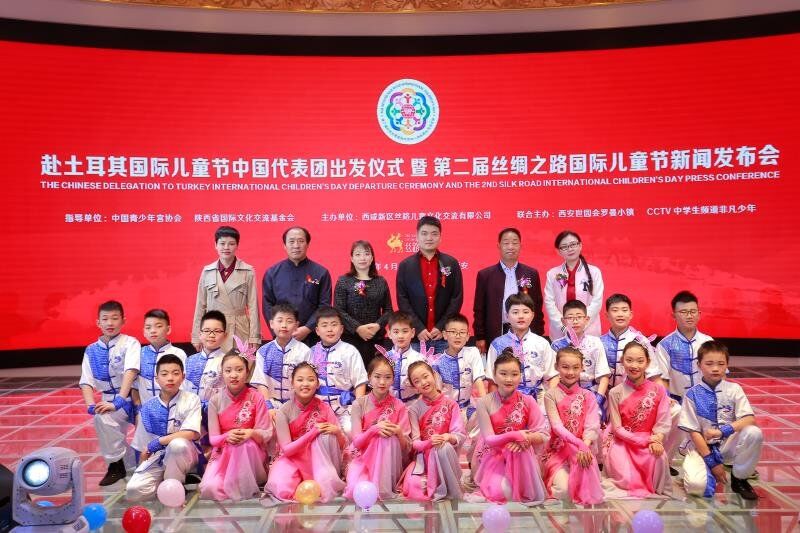 4月12日上午,赴土耳其国际儿童节中国代表团出发仪式暨第二届丝绸之路国际儿童节新闻发布会在陆路丝绸之路起点-西安·世园会罗曼小镇举行。各界关心青少年儿童成长的嘉宾及中国青少年宫、陕西国际文化交流基金会,陕西省教育厅教育系统关工委、西咸新区丝路儿童文化交流有限公司总经理,丝绸之路国际文化经贸交流中心土方代表等领导嘉宾齐聚,共同开启第二届丝路国际儿童节,并预祝即将往前土耳其参加土耳其国际儿童节的中国儿童代表团出行顺利。