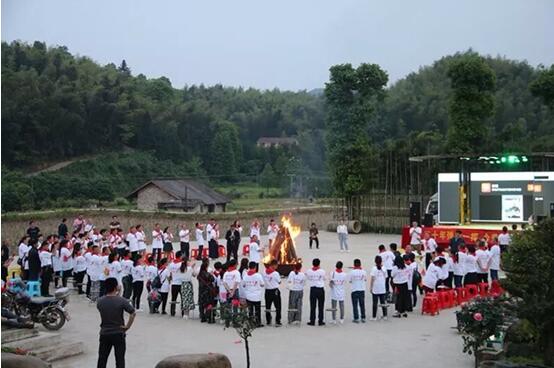 相聚的时光总是如此短暂,白天的喧闹渐渐回归平静。花溪湾的夜色很美,美食很地道。钟志宏同学高举火把,点燃了篝火,也点燃了众人的激情。人群中爆发出阵阵欢呼,掌声四起,音乐随之开始。