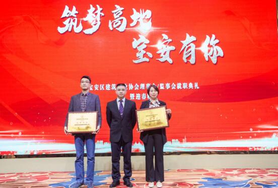 宝安区建筑行业协会监事长古国远颁发深圳市宝安区建筑行业协会监事委任牌。