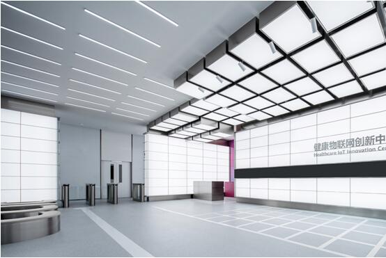 大堂作为观众进入中国健康物联网创新中心展厅的第一印象,需要提供强有力的形象。除了满足基本的功能需求,更多的是展示一种捍卫健康与生命希望的形象。