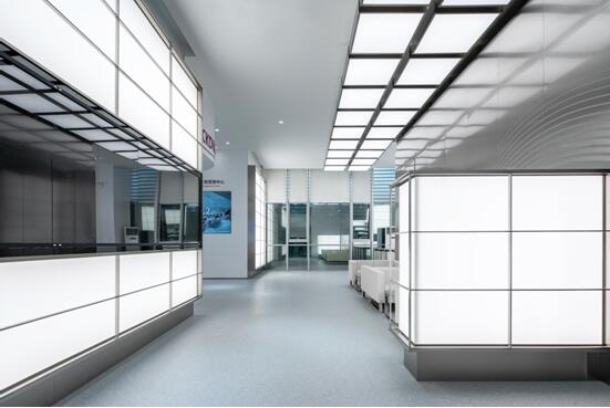 光的表达是一个恒久的设计主题,而此次设计选择了更持久可控的人工光源营造一个井然有序的光空间。设计去除复杂的符号装饰,仅用光的网格营造一种充满未来感的光空间。光网格的空间稳定且有韵律,谱写了一首关于健康和生命的未来诗。