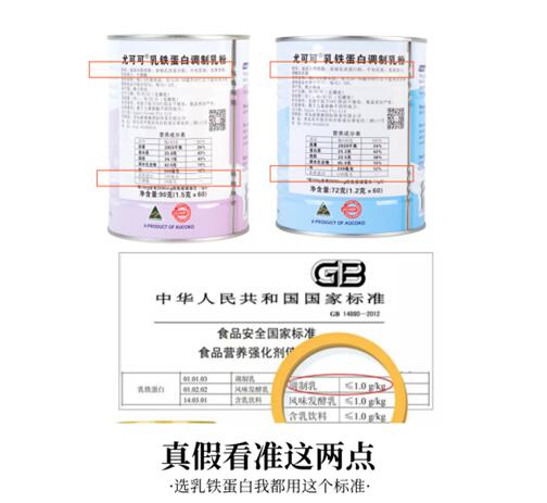 我是在几家进口母婴店了解后,记录了几款乳铁蛋白,首先我对比了目前公认的真乳铁蛋白的标准,唯一铁律:成分配料表、营养成分表同时出现乳铁蛋白;只此一条就去掉了很多假货。其次,国家目前可以进口的乳铁蛋白调制乳粉也是有一个标准的,必须是千分之一的含量,这一规定我选的部分进口产品还是符合的。