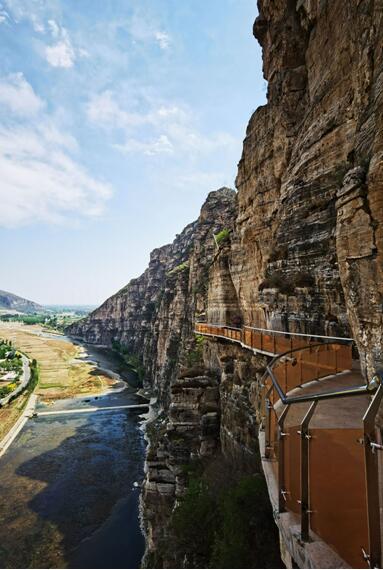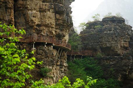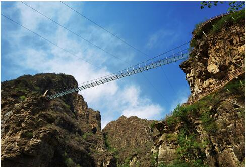 青峰叠嶂,山川连绵,凌空盘旋于峭壁上的玻璃栈道也是一种惊艳的存在,山高入云,低头便是悬崖,挑战游客的心理极限,置身其中,尽揽烟云缥缈的山川美景;走在悬崖步道,目光投射处,深渊深邃,绝壁之下视野万丈;如果在天气晴朗通透的时日,登上天子峰,向南方举目远眺,可一览京畿雄安峻拔的英姿。