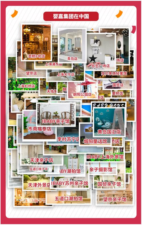 正值婴嘉集团十周年之际,婴嘉集团逆境中发展,目前全国9大城市有58家直营店,专业服务儿童摄影,亲子摄影,全家福旅拍摄影。对于每一位婴嘉人而言,这是一段砥砺前行的征途,是一种镜头下的唯美艺术情怀,更是一串串延伸至远方的足迹;他们在成长中创新,在追求下探索,用不变的初心与爱,定格宝贝成长瞬间,记录纯真精彩童年,为幸福千万家庭送出一份温馨的美好祝愿!