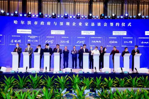 2021年12月1日上午,哈尔滨市政府代表团赴深圳组织召开“哈尔滨市政府与深圳企业家恳谈会”,通过宣传推介、座谈交流等形式,围绕绿色食品、人工智能、生物医药、新材料和文化旅游等领域现场签订了19个合作项目,总签约额68亿。