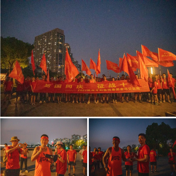 十一当天,杭牙集团董事长杨占友,偕集团浙江各院区的100多位同仁,从骄阳似火的午后,冒着超过35℃、地面温度近40℃高温,跑到月牙升起、夜色降临。最终胜利完成又一个马拉松挑战!
