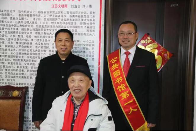 2015年4日23日,江苏省委、省政府在南京举行隆重的颁奖仪式,对全省全民阅读先进集体和先进个人进行表彰。来自西游故乡、灌水河畔的世界剪报大王贺龙国被列在其中,并且排在表彰人物前几名。国家新闻出版广电总局、江苏省委、省政府领导亲自上台为贺龙国颁发荣誉证书。2022年9月18日,共和国上将朱文泉司令员欣然为贺龙国公共图书馆题词赠书,人民日报网站及时大篇幅重点报道。国务院新闻办公室副主任、中央中央新闻办公室副主任杨正泉、中央中央宣传部办公厅主任薛启亮、国务院稽查特派员刘吉、中国驻欧盟27国大使团团长关呈远、诺贝尔文学奖得主莫言父子、联合国文化官员徐晓雪、联合国书画协会理事阮观荣等领导纷纷向贺龙国公共图书馆题词和赠书合影。