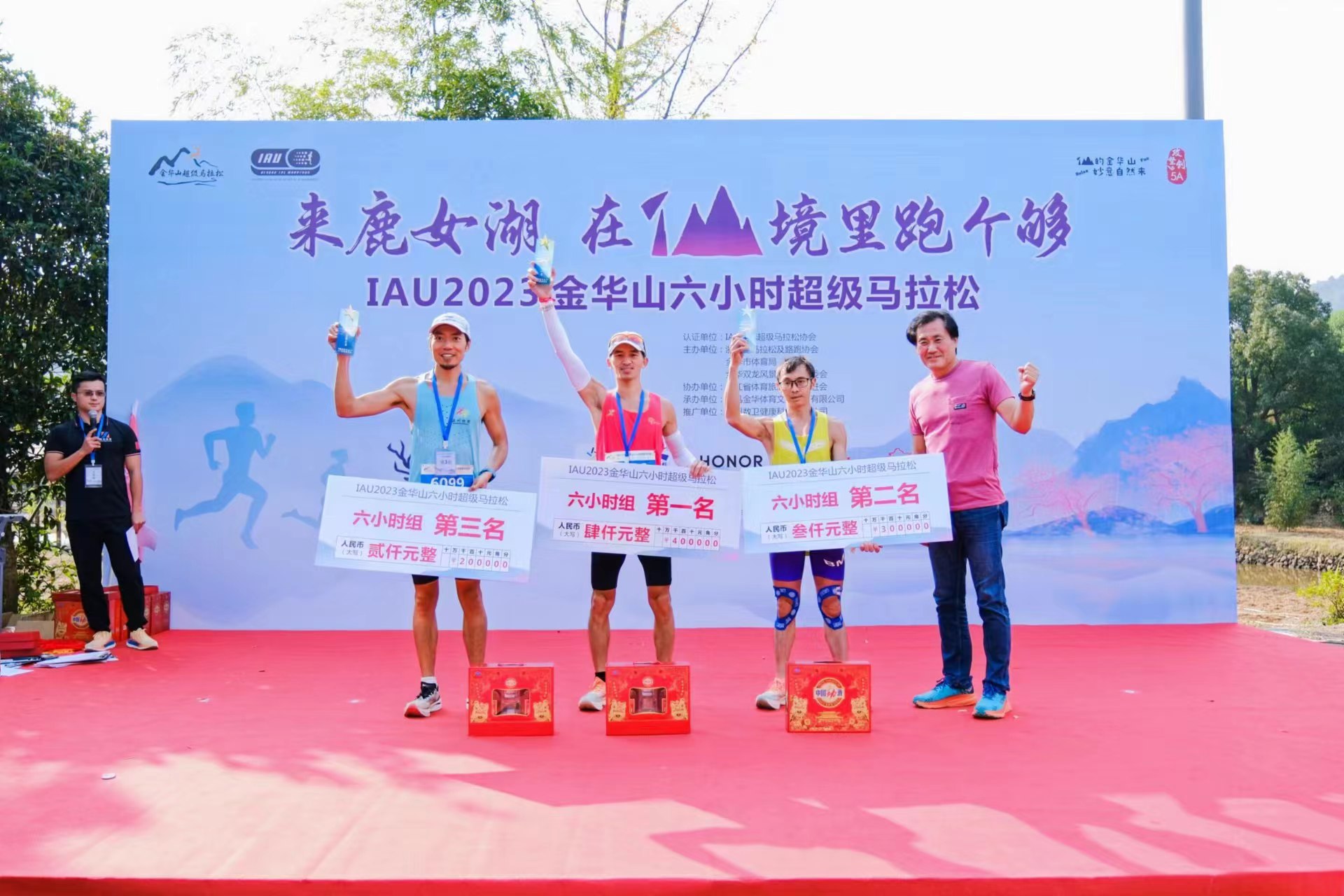 6小时超马接力组冠军金马战队一队以42圈的优异成绩获得,厉害战队41圈获得第二名,梦想战队以40圈获得第三。