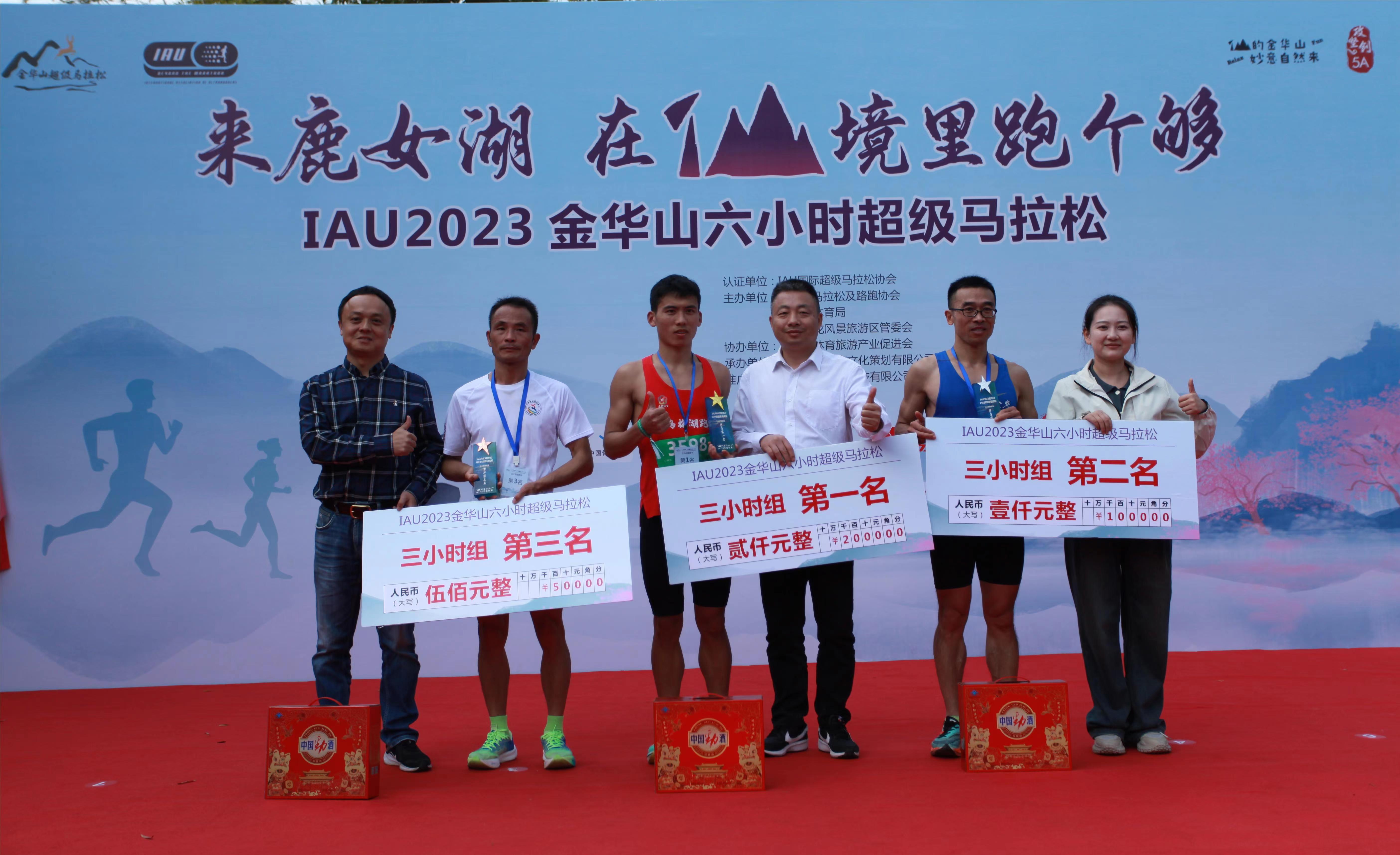 开幕式上,金华双龙风景旅游区党工委副书记、管委会主任徐赞致欢迎词,并与叶建国共同为金华山“浙江省体育旅游示范基地”揭牌;IAU 亚洲区主席朴吉洙为比赛授予国际超马赛事认证书;陈峰齐为七大洲南北极越野极限大满贯者、2023 年环法超级马拉松冠军梁新德颁发“金华山极限运动形象大使”证书。