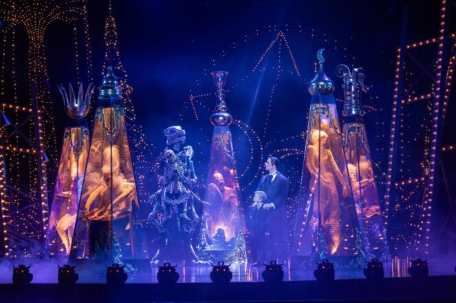 当幕布升起,观众瞬间走进一个奇幻色彩的梦幻之地。作为“魅影”亲手打造的幻想世界,这座“柯尼岛”倾注了这位天才最浪漫、最梦幻、最疯狂的艺术构思:巨大的旋转木马在一众怪人的歌舞中、在奇异的光影里浮动旋转,棱镜建构起如迷宫般的场景,剧场中的奇幻空间,让每一位观众都获得了前所未有的视听盛宴。