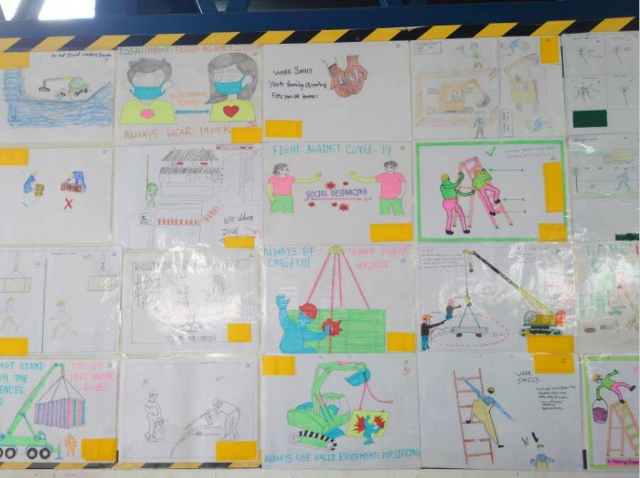 很快,安全绘画大赛收到的作品越来越多,仅2个月,就收到50多幅作品。一幅幅画作不仅架起跨越语言障碍的桥梁,也在潜移默化间强化了外籍员工的安全意识。现场安全违规行为越来越少,顺利突破80万无损工时,并荣获新加坡建筑业高水平安全奖项之一的项目安全卫生认证奖。