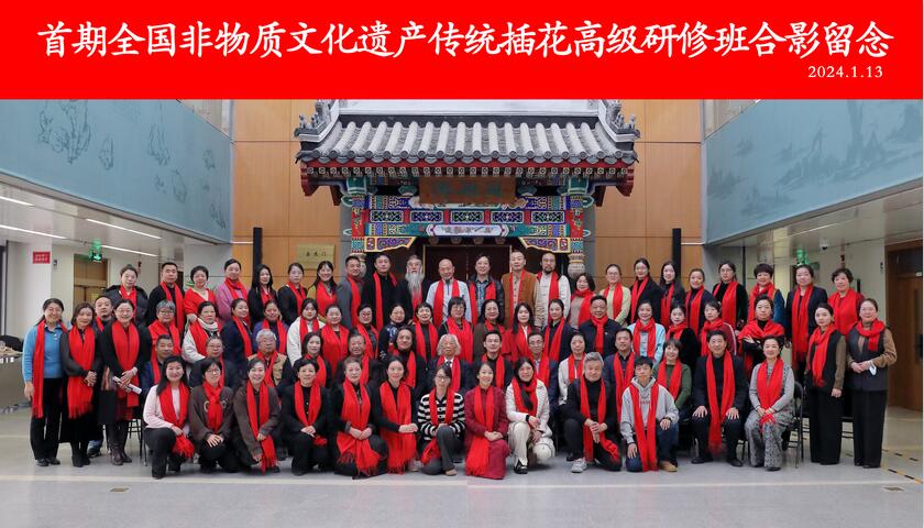 在国家级非物质文化遗产传统插花代表性传承人王莲英的倡议下,1月13日,由中国民俗学会插花专业委员会、北京插花艺术研究会、北京插花协会主办的首期全国非物质文化遗产传统插花高级研修班开班仪式在北京林业大学园林学院举行。