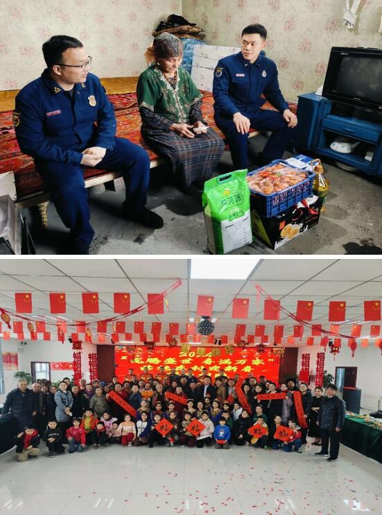 扶贫帮困显关怀,走访慰问暖人心走访慰问贫困户,为其送上大米、油、水果等慰问物品,慰问期间,消防员与老人亲切地聊起家常,询问其日常生活、身体状况等,使其切实感受到消防救援队伍的温暖和关怀,老人脸上也露出了灿烂的笑容。指战员一边为老人粘贴春联、福字并讲解春联的内容,一边为老人宣传党的好政策和农村冬季消防安全要点、春节期间家庭防火的重点注意事项。临别之际,老人握着消防救援人员的手久久不愿松开,并表示感谢消防队伍对他们的关心和照顾。