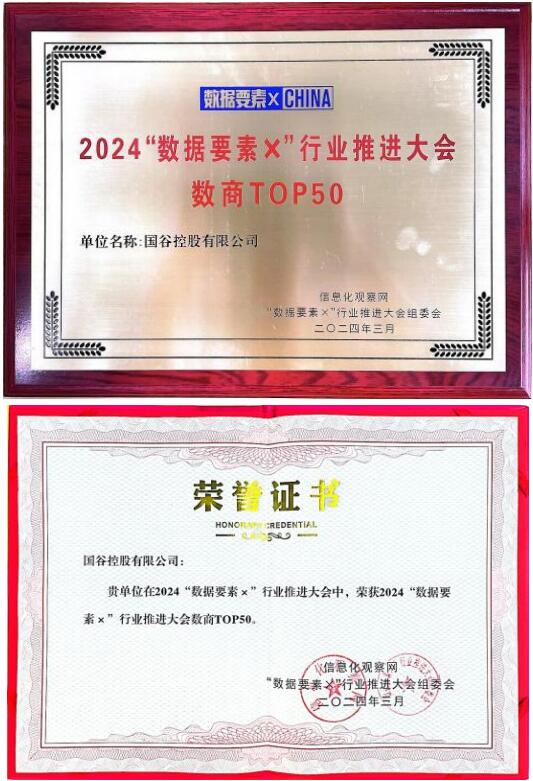 会上,国谷控股有限公司围绕新质生产力创新构建政府信用数据要素生态平台和在公共采购领域创新提出“数据要素×”信用服务模式、信用+N等产品,荣获2024“数据要素×”行业推进大会“数商TOP50”大奖。