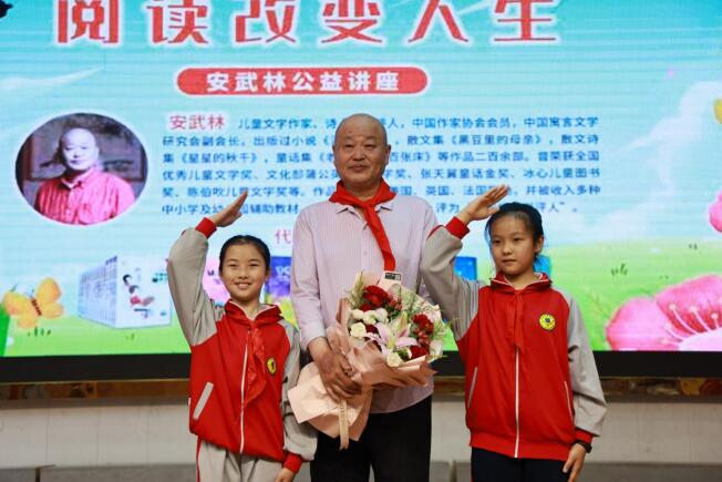 2024年4月15日,全国著名儿童文学作家安武林老师应邀走进湖南武冈市,先后为该市实验小学和迎春亭街道新东中心小学举行“阅读改变人生”的专题讲座,助力武冈市“三益”主题阅读活动的开展。武冈市关工委主任李良时、执行主任周清白、共青团武冈市委书记杨珍珍等领导到会出席讲话,并为获奖个人和班级颁奖。