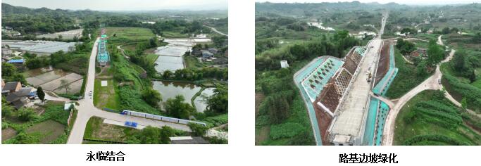 康渝八标项目部严格按照西昆公司标准化管理要求,施工过程中坚持主附同步、绿色建造,成型一段、绿化一段,影响一段、复绿一段。按照“能绿尽绿,非硬即绿,少硬多绿”原则对便道走向、场站位置选择进行方案比选,尽量减少对当地植被的影响。便道两侧设置截排水沟+沉淀池的排水系统,防止污染便道范围外的土地。若便道两侧存在边坡,及时撒草籽绿化,做到施工现场与自然环境融为一体。在建设工程中注重当地生态保护,永临结合。