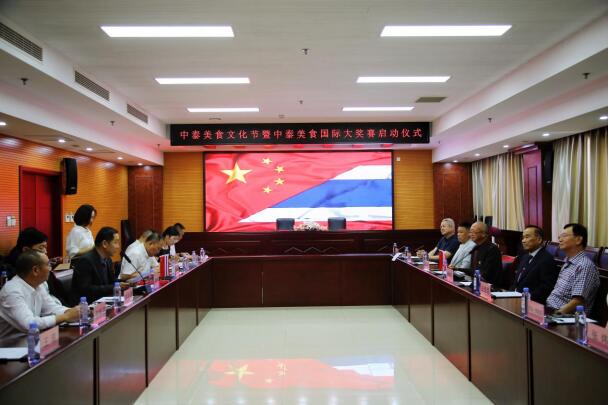 中泰美食文化节暨中泰美食国际大奖赛启动仪式上泰中关系协会主席奔勒将军(GEN BOONLERT)出席会议并在讲话中强调,泰中两国有着深厚的友谊,亲如一家,泰国美食和中国美食都是世界上又好吃又好看的美食,文化深厚,历史悠久。前不久,在北京举办的中泰美食文化节,向中国人民呈现了泰国美食的精粹和泰国民族舞蹈,起到了很好的社会效益,大大促进了两国人民的美食文化,旅游和贸易交往。今天,在北京启动了中泰美食文化节暨中泰美食国际大奖赛将在曼谷举办,我期待着中国美食文化在泰国大展宏图,更希望我能给中华美食名厨颁发金奖。最后,奔勒主席祝大家“六一节快乐!”。